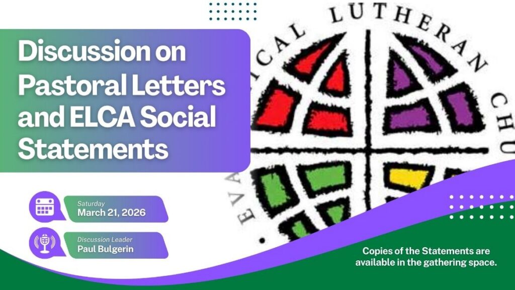 Discussion will be led by Paul Bulgerin, council president and retired ELCA pastor.
